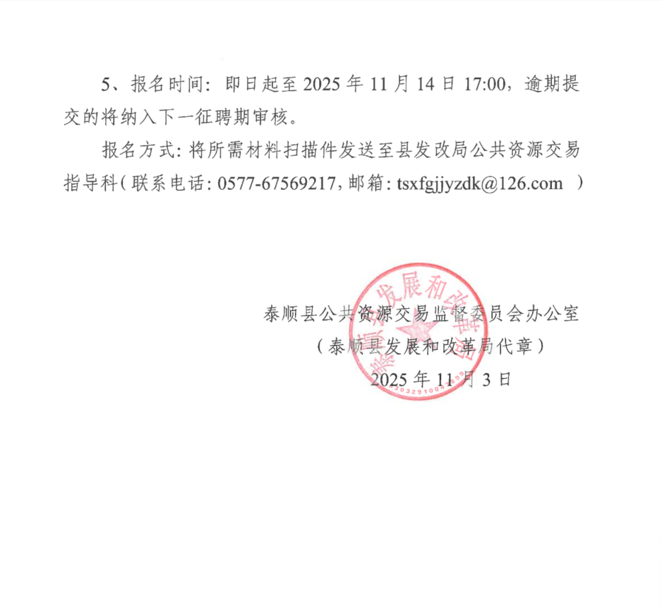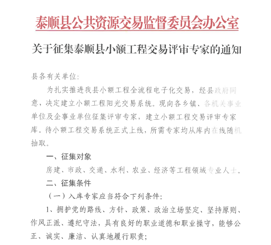关于征集泰顺县小额工程交易评审专家的通知